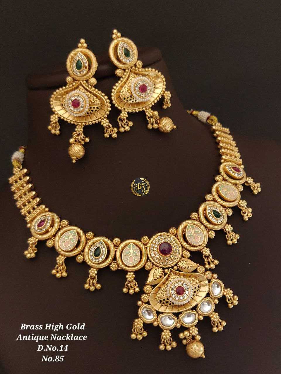 SKU : KE-20648 Fabric : Brass Qty : 1 Pcs Weight : 0.5KG Descriptions : Brass Quality Rajwadi polish Diamond And Meena Work Nacklace , Earring