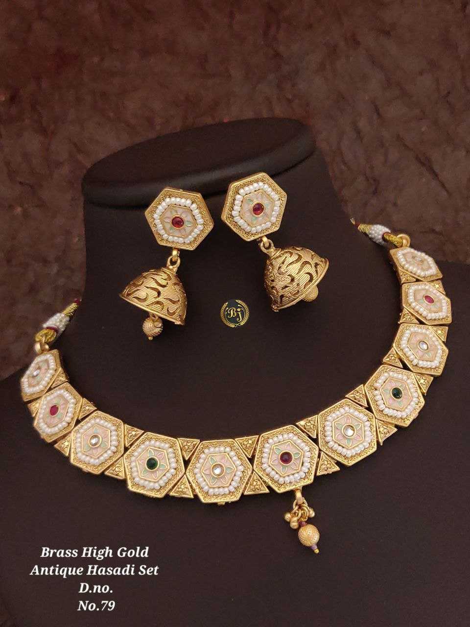SKU : KE-20639 Fabric : Brass Qty : 1 Pcs Weight : 0.5KG Descriptions : Traditional A D High Gold Chokar Set for Beautyfull ladies Base Metal : Brass