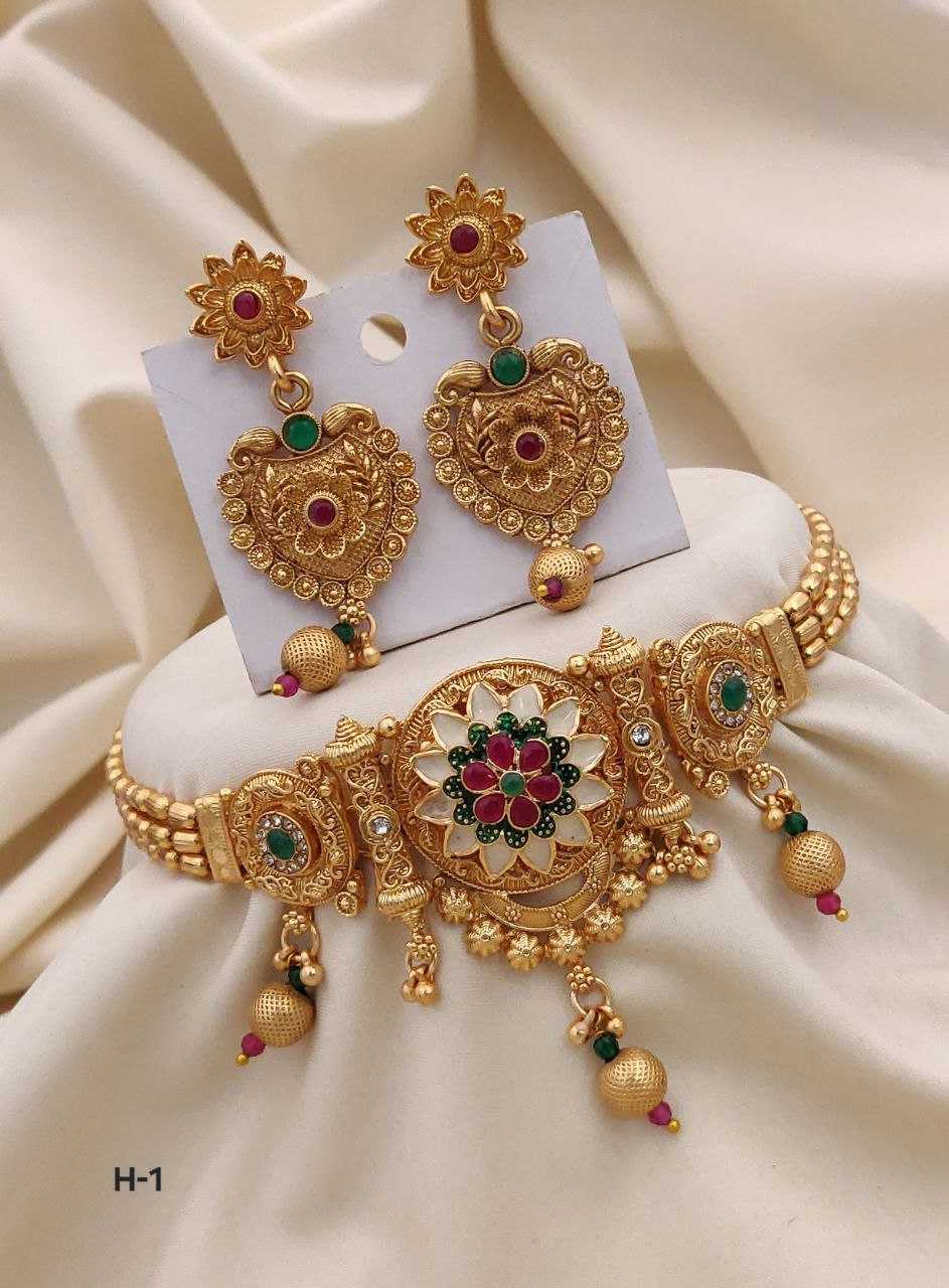 SKU : KE-30789 Catalog : KESH193 ROR138 C Fabric : Brass Qty : 1 Pcs Weight : 0.1KG Descriptions : Brass High Gold Rajvadi Choker Set